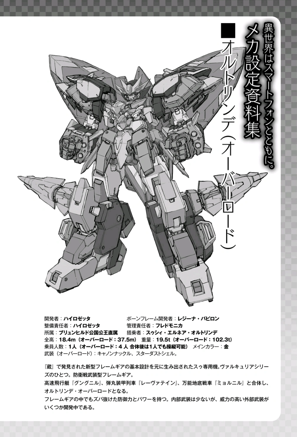 Laevateinn (レーヴァテイン,Rēvatein?): An high speed armored bullet train that is piloted by High Rosetta and forms the arms of Sue's Ortlinde Overlord FG.