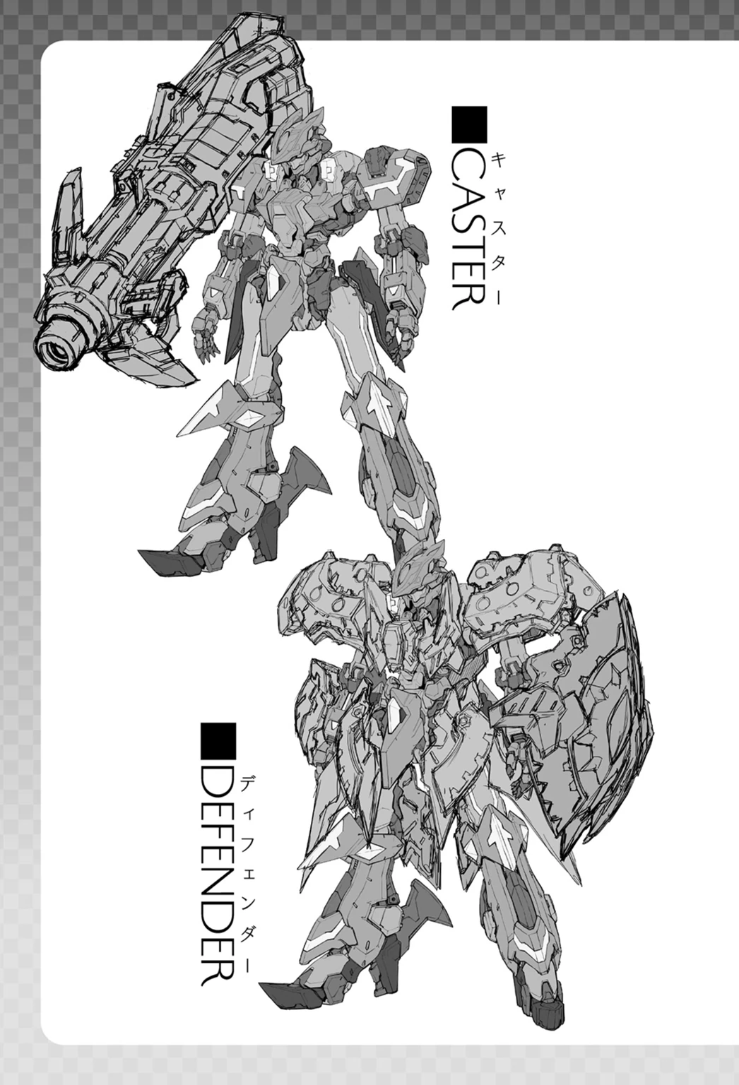 Unit C (Caster) - A unit that specializes in long range combat. It is equipped with a large magic cannon located on it's shoulder that fires powerfully shot bullets at far off enemies.When using this unit it also deploys anchors located in it's heels to help steady itself when firing.[17]